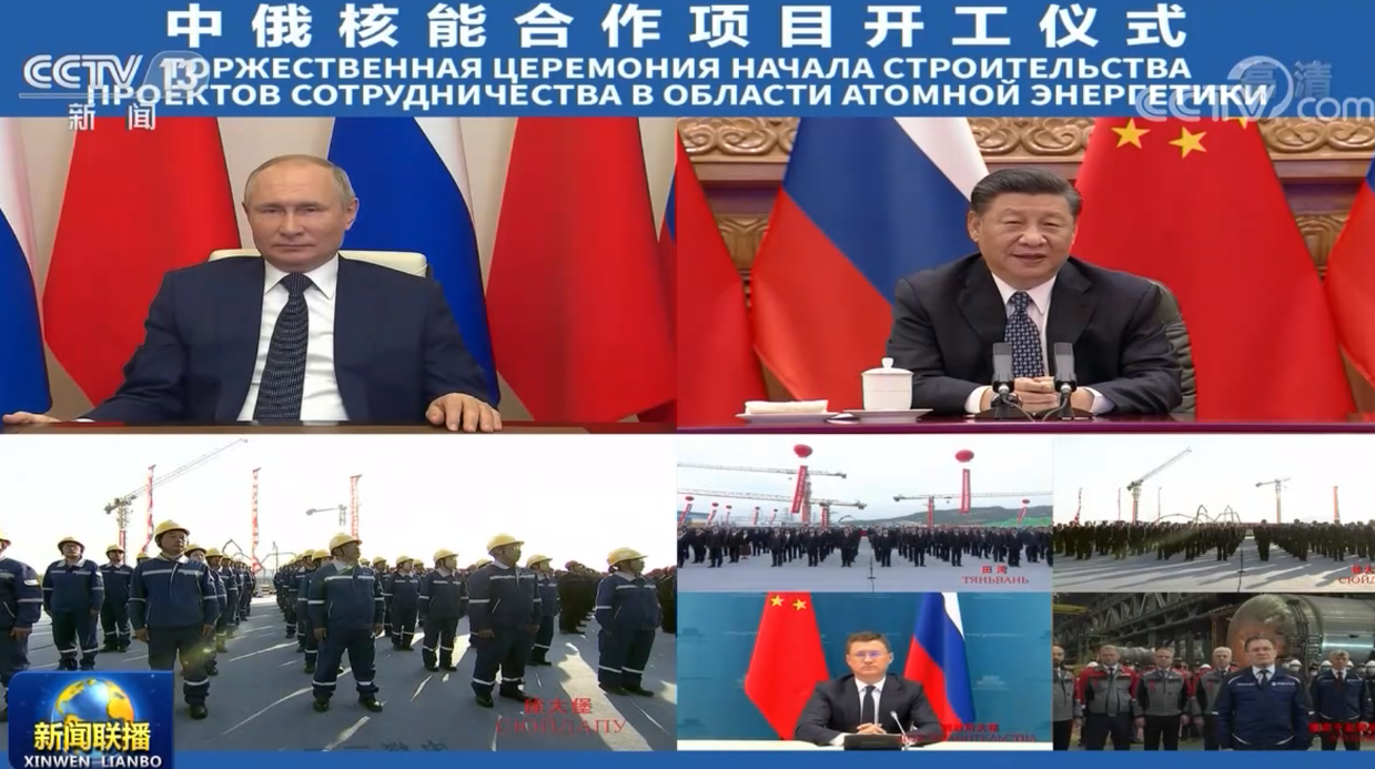 中俄雙方有關(guān)部門和地方負(fù)責(zé)人、工程建設(shè)者代表通過視頻連線分別在江蘇省連云港市田灣核電站分會(huì)場(chǎng)、遼寧省葫蘆島市徐大堡核電站分會(huì)場(chǎng),莫斯科政府大樓分會(huì)場(chǎng)、羅斯托夫州原子能機(jī)械制造廠分會(huì)場(chǎng)參加儀式。兩國企業(yè)負(fù)責(zé)人分別向兩國元首匯報(bào)項(xiàng)目進(jìn)展情況。