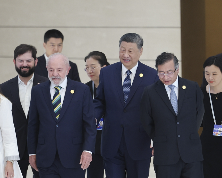 ??拉共體輪值主席國哥倫比亞總統(tǒng)佩特羅,巴西總統(tǒng)盧拉,智利總統(tǒng)博里奇,新開發(fā)銀行行長、巴西前總統(tǒng)羅塞芙分別致辭。拉共體候任輪值主席國烏拉圭總統(tǒng)奧爾西特別代表宣讀總統(tǒng)賀信。他們高度評價(jià)拉中論壇10年發(fā)展取得的豐碩成果,贊賞中國為推動拉中合作、促進(jìn)拉美經(jīng)濟(jì)社會發(fā)展作出的重大貢獻(xiàn)。各方重申堅(jiān)定支持一個中國原則。各方表示,習(xí)近平主席提出的構(gòu)建人類命運(yùn)共同體理念和三大全球倡議,為世界開辟了和平繁榮進(jìn)步的光明前景。面對充滿不確定性的世界,拉中應(yīng)攜手合作、同舟共濟(jì),推動拉中命運(yùn)共同體建設(shè)不斷取得新進(jìn)展,共創(chuàng)拉中合作美好未來。拉中雙方要堅(jiān)持相互尊重,堅(jiān)定支持對方維護(hù)主權(quán)和自主選擇發(fā)展道路;加強(qiáng)拉美各國發(fā)展戰(zhàn)略同“一帶一路”倡議對接,推動貿(mào)易、投資、基礎(chǔ)設(shè)施、農(nóng)業(yè)、科技、新能源、教育合作,實(shí)現(xiàn)互利共贏;推動文明交流對話,增進(jìn)拉中人民相知相親;堅(jiān)定維護(hù)聯(lián)合國權(quán)威,維護(hù)世界和地區(qū)和平穩(wěn)定,支持多邊主義、自由貿(mào)易,反對單邊主義、保護(hù)主義、強(qiáng)權(quán)政治和霸凌行徑,維護(hù)全球南方國家共同利益。