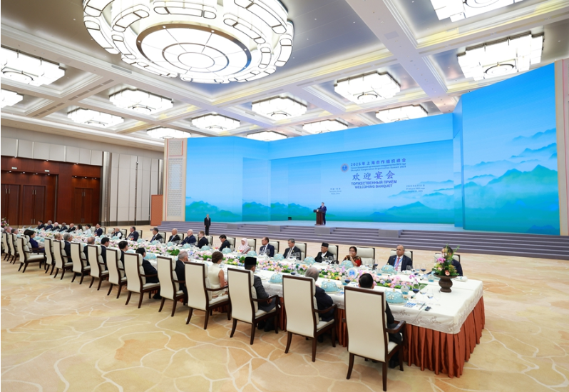 習近平和彭麗媛為出席2025年上海合作組織峰會的國際貴賓舉行歡迎宴會