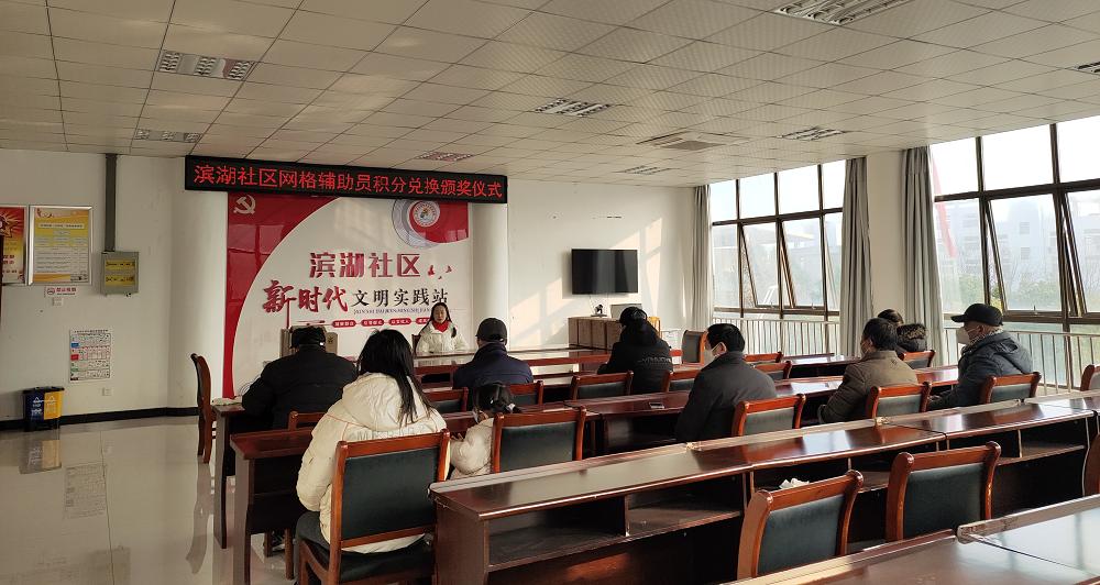 社區(qū)工作人員對(duì)網(wǎng)格輔助員平時(shí)的工作進(jìn)行了量化積分,社區(qū)按照“多參與、多得分”的原則,對(duì)網(wǎng)格輔助員的工作積分進(jìn)行累計(jì),每月進(jìn)行統(tǒng)計(jì),每季度末月進(jìn)行積分兌換。2023年1月3日,濱湖社區(qū)工作人員將網(wǎng)格輔助員們請(qǐng)到社區(qū)會(huì)議室,舉辦了第一次積分兌換活動(dòng)。