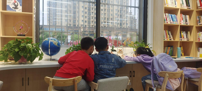 “在這里可以和同學(xué)們一起看書,還有老師可以輔導(dǎo)作業(yè),環(huán)境也很漂亮,感覺學(xué)習(xí)的效率都提高了不少?!币晃煌瑢W(xué)在面對(duì)志愿者問她對(duì)這個(gè)延時(shí)服務(wù)的看法時(shí)回答道。