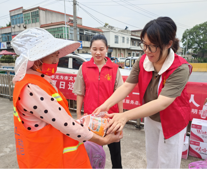 炎炎夏日,驕陽似火,為向奮戰(zhàn)在高溫一線的勞動者表達(dá)謝意和關(guān)愛,給他們送去夏日的清涼問候。近日,無為市新時代文明實(shí)踐中心聯(lián)合石澗鎮(zhèn)新時代文明實(shí)踐所開展以“炎炎夏日送清涼 情系一線暖人心”為主題的文明實(shí)踐活動。