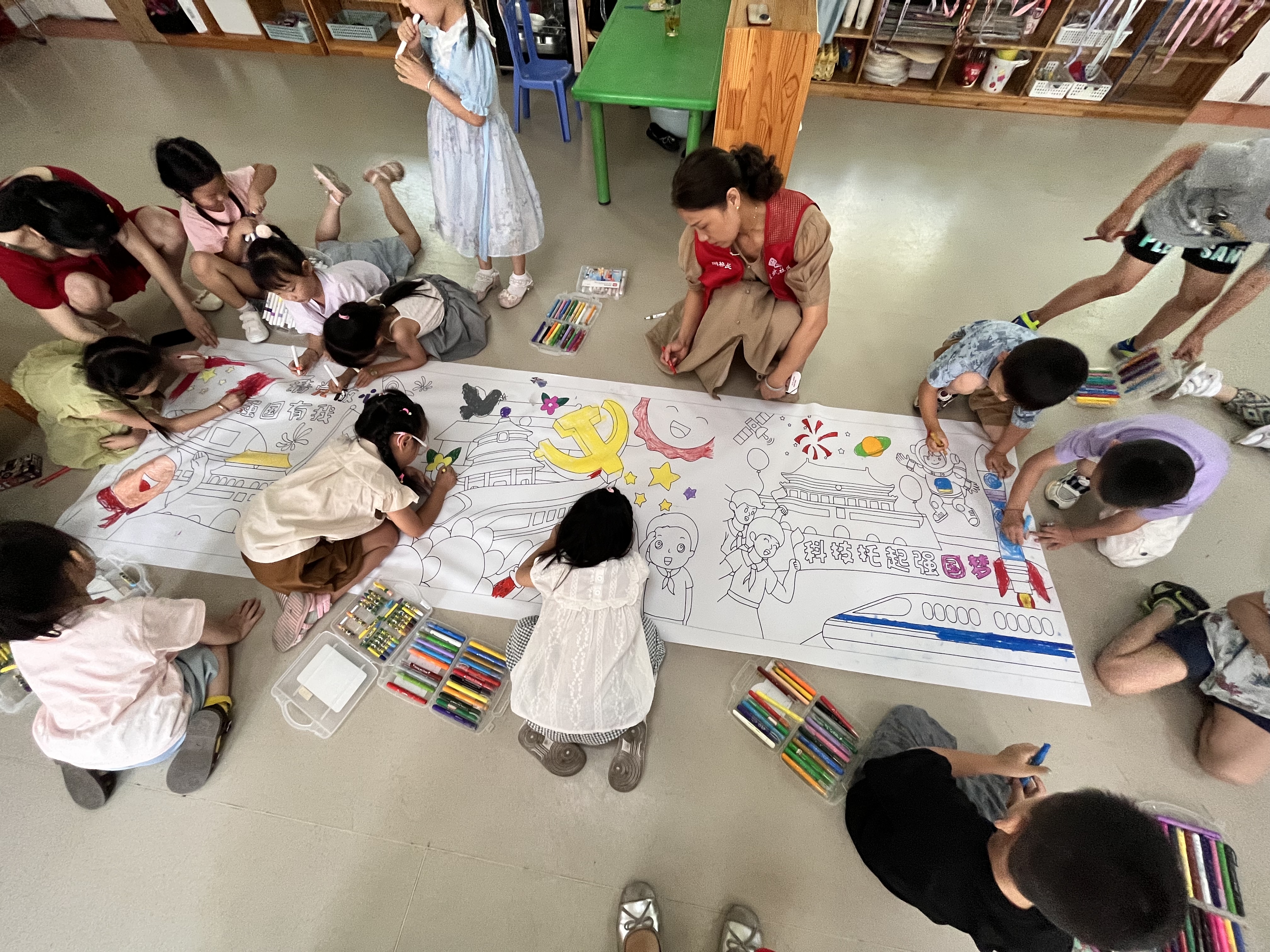 接著,40余名孩子和老師一起參加了長(zhǎng)卷繪祖國(guó)繪畫展示活動(dòng)。他們神情專注、構(gòu)思巧妙,把對(duì)祖國(guó)的熱愛融入斑斕的色彩,繪成了一幅主題鮮明、富有童真的繪畫長(zhǎng)卷,以獨(dú)特的方式向祖國(guó)獻(xiàn)上了自己的祝福。