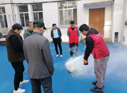 此外,志愿者還現(xiàn)場指導(dǎo)老年助餐點的工作人員應(yīng)該如何正確使用滅火器,在使用時應(yīng)該如何避開風(fēng)口才能有效地阻止火源蔓延。隨后志愿者還在小區(qū)內(nèi)做示范,告知居民在起火時怎樣去使用滅火器滅火,以及不同的滅火器使用技巧。