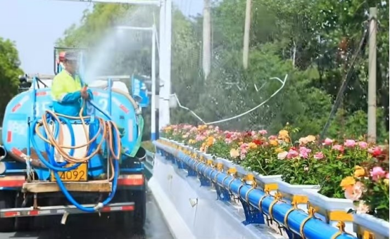 同時,對王福渡大橋進行“橋裝打扮”景觀換新,更換300盆橋體掛花,由迎春花升級為矮生月季,煥新橋體風貌。并完成市政府周邊綠化提升330平方米草花補植與更換,提升道路景觀效果。