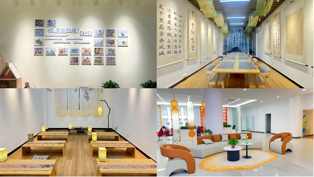 此次改造聚焦居民實際需求,在空間功能上做“加法”、在行政壁壘上做“減法”。改造后的服務(wù)中心,不僅保留高效的政務(wù)服務(wù)窗口,更新增“書法沙龍室”“茶藝養(yǎng)生室”“兒童活動室”“便民休閑大廳”四大特色場景,覆蓋全年齡段居民需求:書法沙龍室配備筆墨紙硯與作品展示墻,成為社區(qū)書法愛好者交流創(chuàng)作的“文化驛站”;茶藝養(yǎng)生室定期開展茶道體驗、健康講座,深受中老年居民青睞;兒童活動室劃分閱讀區(qū)、游戲區(qū),配備安全防護設(shè)施,解決家長“帶娃難”的后顧之憂;便民休閑大廳設(shè)置沙發(fā)、充電站、報刊架,既是居民等候辦事的臨時休憩點,也是鄰里聊天議事的“共享客廳”。