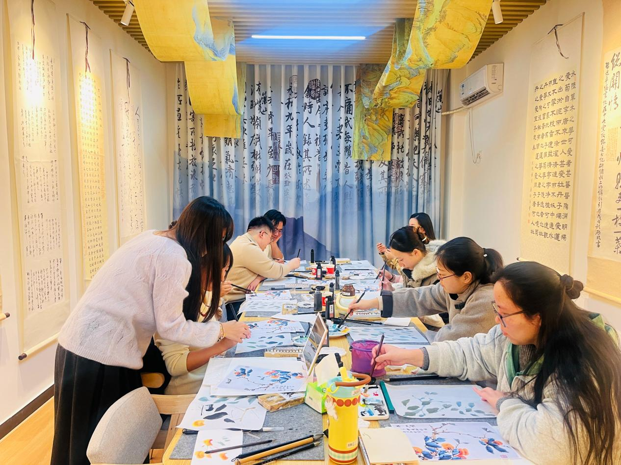 為保障課程順利開展,社區(qū)提前謀劃、細(xì)致籌備,不僅精準(zhǔn)采購國畫專用顏料、兼毫毛筆、生宣、半生宣畫紙等全套工具,還對教室進(jìn)行精心布置,營造出古雅清幽的學(xué)習(xí)氛圍,讓青年學(xué)員無需額外準(zhǔn)備即可沉浸式體驗國畫魅力。開課當(dāng)日,學(xué)員們熱情高漲,不少人提前半小時到場,或參觀教室布置,或與同伴交流對國畫的期待,課堂未啟便滿是活力。