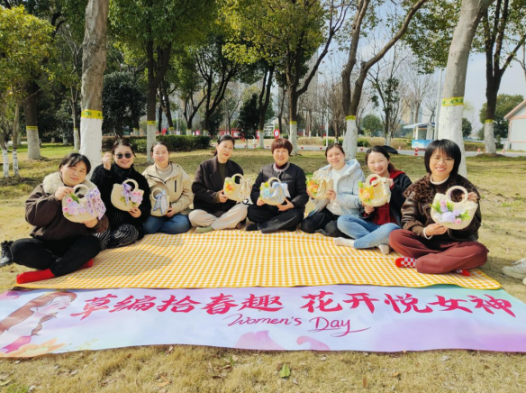 活動(dòng)現(xiàn)場(chǎng),陽(yáng)光和煦,微風(fēng)拂面。大家圍坐在鋪著黃白格紋野餐墊的草地上,手中拿著竹編包、絲帶、干花等材料,認(rèn)真地進(jìn)行創(chuàng)作。大家精心挑選花朵點(diǎn)綴包身,用絲帶纏繞出精致的裝飾,彼此交流創(chuàng)意、分享技巧,歡聲笑語(yǔ)不斷。在輕松愜意的氛圍里,一個(gè)個(gè)樸素的竹編包被賦予春日生機(jī)與浪漫色彩,搖身成為獨(dú)一無(wú)二的精美作品,既留住了春日美好,也展現(xiàn)了社區(qū)女職工心靈手巧、熱愛(ài)生活的動(dòng)人風(fēng)采。