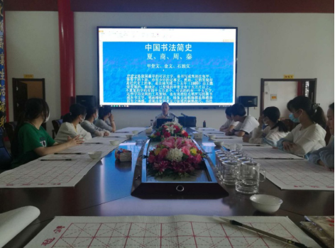 書法藝術培訓課的地點選址在三溝文化研究中心(鎮(zhèn)新時代文明實踐點之一),這里同時也是高溝鎮(zhèn)唯一一所祠堂所在處。其建筑青瓦朱欄,斗檐飛拱,屋內陳設精致,極富古典韻味。早晨八時在廳堂的會議桌處,趙鵬飛正式開始授課,他以文字起源為切入,一路旁征博引,結合歷代傳世的書法作品,講述我國書法藝術璀璨歷程,增強學生見聞,激發(fā)其濃厚興趣。接著,他進行基本功教學,從運筆開始做示范,傳授筆畫書寫要訣。學生們的座位上,毛氈筆墨紙俱全。對于初學者而言,控筆難度較大,稍不注意就會泅成一片,為此,教學過程盡量做到了細致明了,切中肯綮。在練習過半時,趙鵬飛對學生們一一做出指導,根據(jù)個體情況因材施教。經過一番牛刀小試,學生們的藝術本領得到普遍提高,在培訓課走向結束時,仍然在思考討論筆鋒流轉,有所回味。