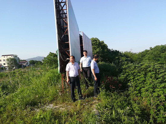 5月19日下午,嚴橋鎮(zhèn)鎮(zhèn)長(左一)宣光東對鎮(zhèn)主干道及鎮(zhèn)內(nèi)的環(huán)境衛(wèi)生、占道經(jīng)營、廣告治理等進行督查