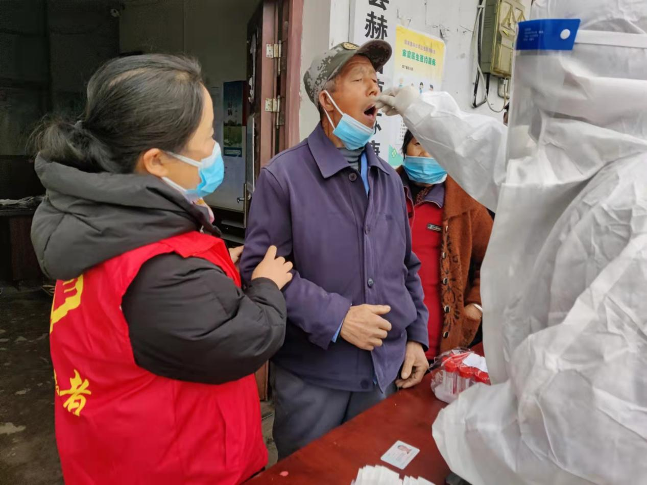 “啊,爺爺奶奶頭往后仰,張開(kāi)嘴巴,別緊張?!贬t(yī)護(hù)人員一邊耐心地安慰長(zhǎng)者,一邊認(rèn)真利索的采樣。