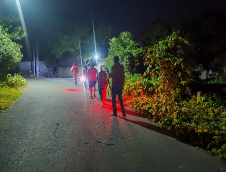 夜間巡邏隊伍由村“兩委”干部、黨員、志愿者、熱心群眾組成。每當夜幕降臨,夜巡隊伍身著志愿服,配備手電筒、巡查棒、紅袖標等夜間巡邏裝備,走街入戶開展“夜巡”活動。巡邏中,大家深入轄區(qū)各自然村主干道、偏僻地段等重點區(qū)域進行不間斷巡邏防控,逐一排查安全隱患。巡邏隊員們一旦發(fā)現(xiàn)可疑情況,迅速響應(yīng)突發(fā)狀況,盡快處置,妥善處理,及時上報,全力確保轄區(qū)內(nèi)和諧穩(wěn)定,切實做到早預(yù)防、早發(fā)現(xiàn),早控制、早化解,確保夜間治安巡邏無死角、無盲區(qū)。同時提醒群眾外出時記得關(guān)好門窗,水電和煤氣,注意防火、防盜、防詐騙,做好個人防護,注意人身安全。