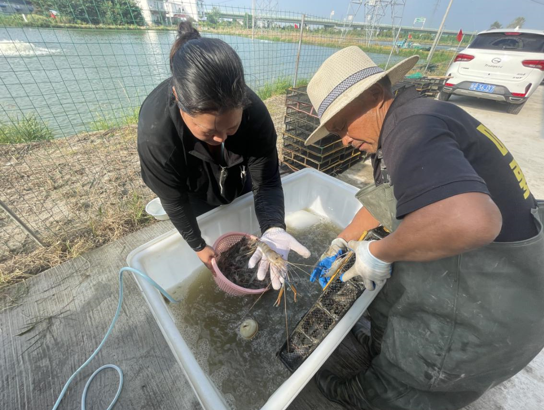 眼下到了魚蝦上市的黃金時節(jié),9月9日上午,位于福渡鎮(zhèn)石碑村羅氏沼蝦養(yǎng)殖基地,十多個工人將一只只色澤鮮亮、活蹦亂跳的羅氏沼蝦捕撈上岸,一片繁忙豐收的景象。