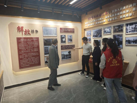 活動(dòng)伊始,在熟悉抗戰(zhàn)歷史的老黨員帶領(lǐng)下,年輕干部們來(lái)到展覽館進(jìn)行參觀,通過(guò)老黨員對(duì)圖文展板聲情并茂的講述,年輕干部們對(duì)當(dāng)時(shí)的革命歷史有了感性的認(rèn)識(shí),仿佛身處那段熱血?dú)q月,了解到當(dāng)時(shí)如火如荼的革命運(yùn)動(dòng),并為前輩們不怕艱難困苦的精神所感動(dòng),進(jìn)一步追憶崢嶸歲月,弘揚(yáng)優(yōu)良傳統(tǒng)。