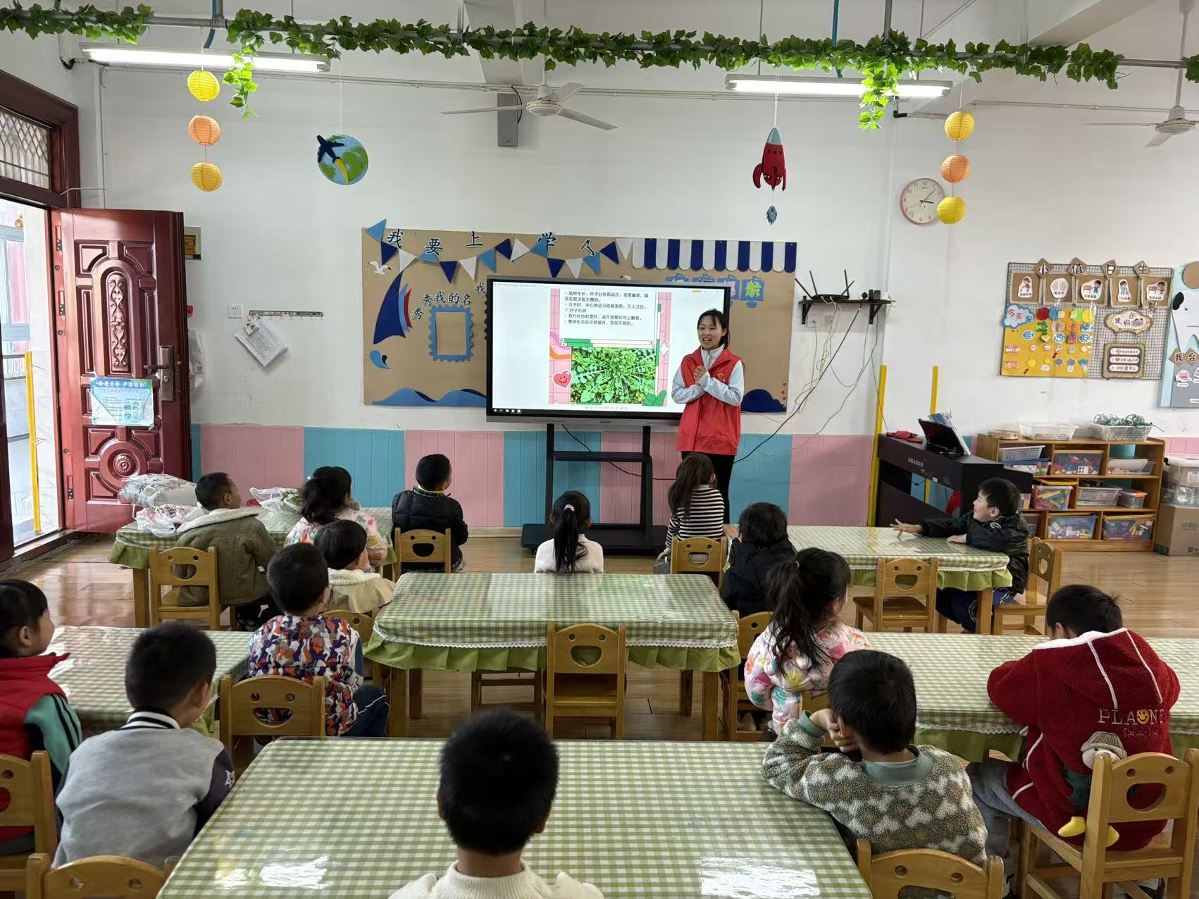 活動(dòng)現(xiàn)場(chǎng),志愿者給幼兒園的小朋友介紹常見(jiàn)的野菜,志愿者老師用圖文結(jié)合和實(shí)物展示的方式,向小朋友們科普在田野中常見(jiàn)的野菜。