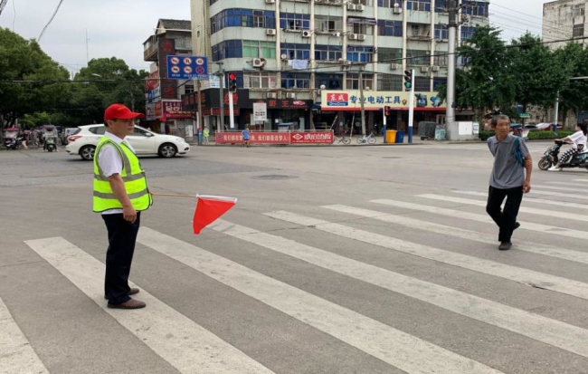 6月5日早上7:10分左右,局領導趙越、機關干部丁中貴、汪慧、黃子木等4名志愿者在提前到達南門城門口執(zhí)勤點后,大家快速穿上反光背心、戴上小紅帽、拿好口哨和小紅旗,立即投入到了“禮讓斑馬線”文明勸導志愿服務活動中。雖然時間只一個多小時,但大家在執(zhí)勤過程中,都能認真履行職責,不時舉起小紅旗,吹響口哨,提醒機動車禮讓行人,指揮、疏導非機動車和行人過馬路,得到了市交警同志和廣大市民的一致稱贊,較好地營造了該地段安全暢通、文明和諧的交通環(huán)境。