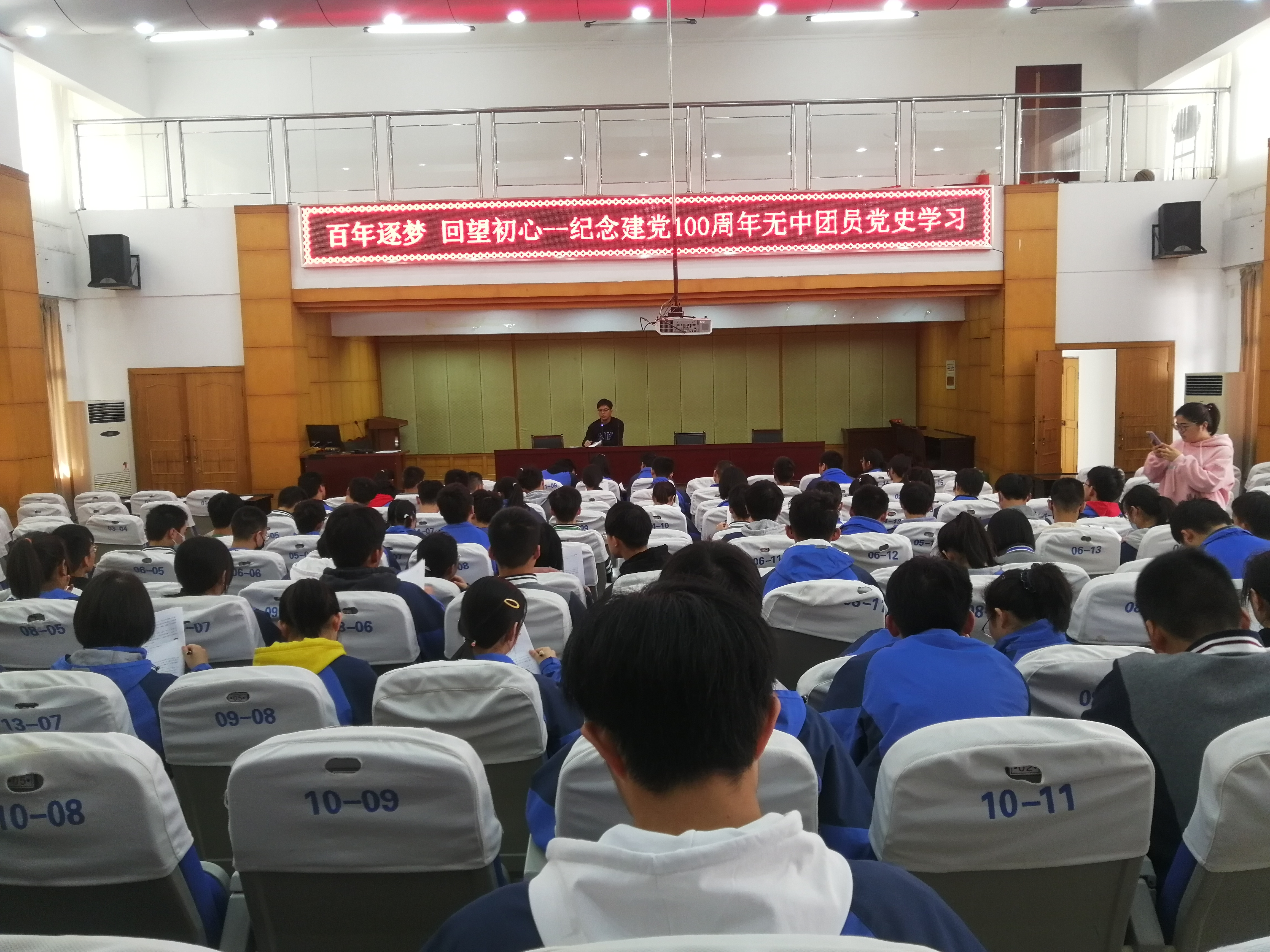 為慶祝黨的百年華誕,熱情謳歌中國(guó)共產(chǎn)黨領(lǐng)導(dǎo)中國(guó)革命和建設(shè)取得的偉大成就,團(tuán)結(jié)帶領(lǐng)廣大青少年知黨史、悟初心、跟黨走,無為中學(xué)團(tuán)委于2021年4月18日上午9點(diǎn)在天敏樓二樓報(bào)告廳召開“百年逐夢(mèng),回望初心”黨史主題學(xué)習(xí)活動(dòng),無為中學(xué)各班團(tuán)支部書記和部分團(tuán)員代表參加了本次學(xué)習(xí)。