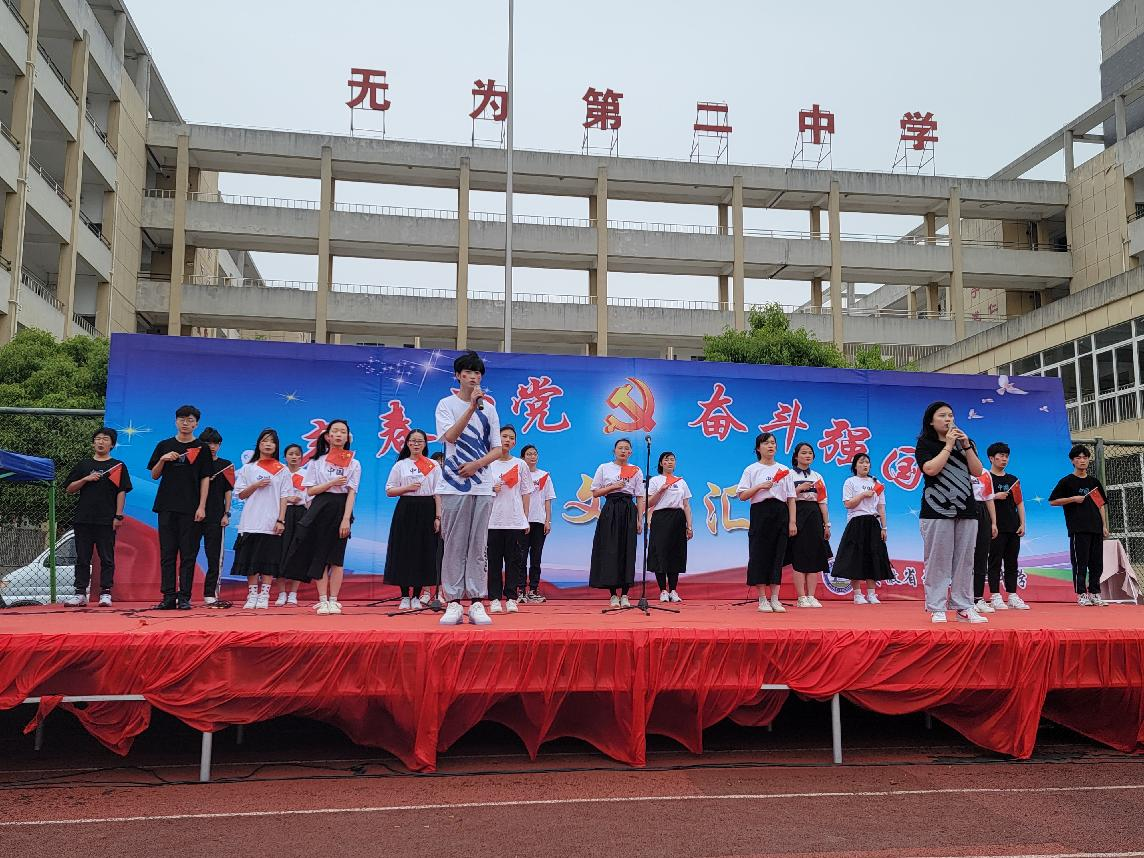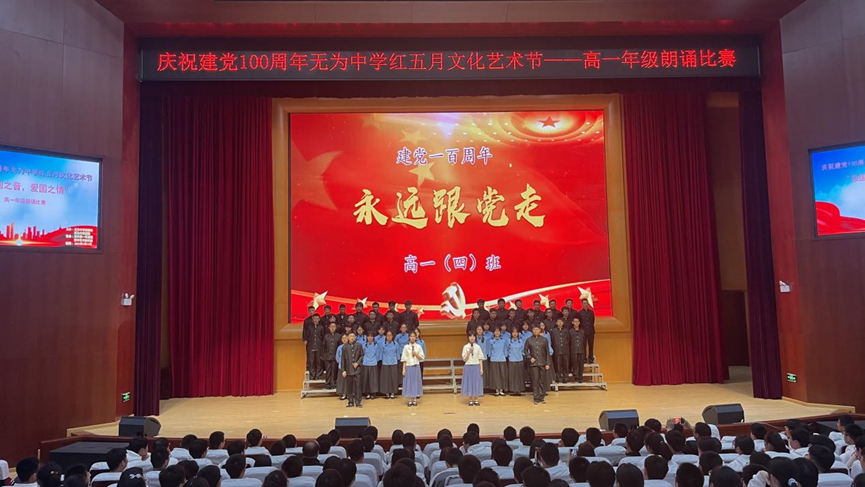 歌青春中國 頌百年風(fēng)華——無為中學(xué)舉辦建黨100周年紅五月文化藝術(shù)節(jié),學(xué)生集體朗誦《永遠(yuǎn)跟黨走》。