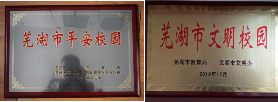 綜合治理到位,校園和諧平安。依章依規(guī)強(qiáng)化校園環(huán)境綜合治理,積極配合鎮(zhèn)政府、派出所、工商所、食品藥品監(jiān)督局等對(duì)學(xué)校及周邊環(huán)境進(jìn)行整治,凈化了校園環(huán)境。每年,學(xué)校均邀請(qǐng)律師事務(wù)所或司法所或派出所等專業(yè)人員來校作法制教育、毒品預(yù)防教育和防范校園欺凌教育等,不斷增強(qiáng)師生守法用法的觀念。2018年無(wú)為縣第一屆文明校園稱號(hào);2018年蕪湖市文明校園稱號(hào);2018年蕪湖市平安校園; 2019年無(wú)為市第二屆文明校園稱號(hào);2019年蕪湖市毒品預(yù)防工作示范學(xué)校;202019年榮獲全國(guó)文明校園先進(jìn)學(xué)校稱號(hào);2020年無(wú)為市第三屆文明校園。