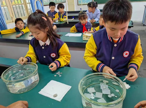 三年級(jí)比賽項(xiàng)目:手拋飛機(jī)滯空賽、趣味撲克牌“搭塔”比賽、水上漂?!∪昙?jí)的學(xué)生用撲克牌搭起高高的塔,初步了解建筑學(xué)知識(shí)。平穩(wěn)的水面上到底能放多少個(gè)硬幣呢?拋向空中的飛機(jī),能不能穿越時(shí)空,連接未來……