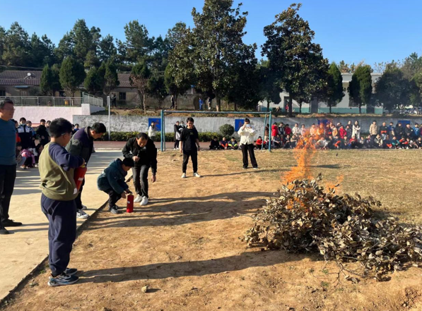 緊急撤離完畢后,同學(xué)什么在操場集合,分管校園安全的李升興校長為同學(xué)們認(rèn)真講解了滅火器的正確使用方法,親自示范后,組織了三名學(xué)生進(jìn)行現(xiàn)場操作滅火器。