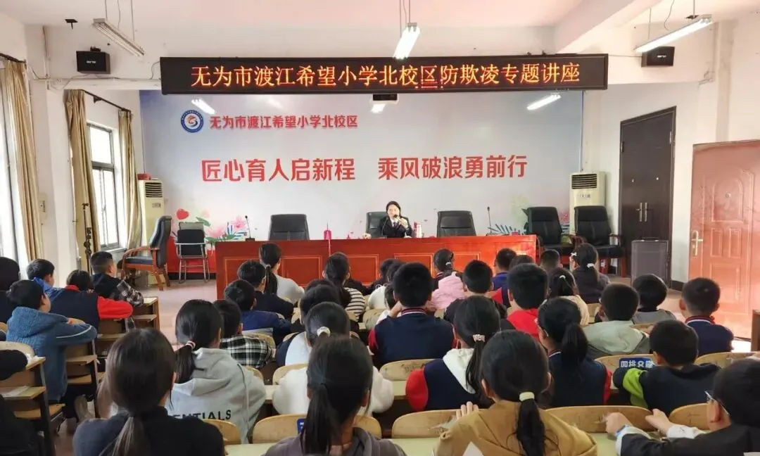 近日,無(wú)為市人民法院鐘俊梅法官被聘為無(wú)為市渡江希望小學(xué)北校區(qū)法治副校長(zhǎng),她為同學(xué)們帶來(lái)一場(chǎng)生動(dòng)而深刻的“播撒法治星光,照亮成長(zhǎng)之路”暨防欺凌專題講座。