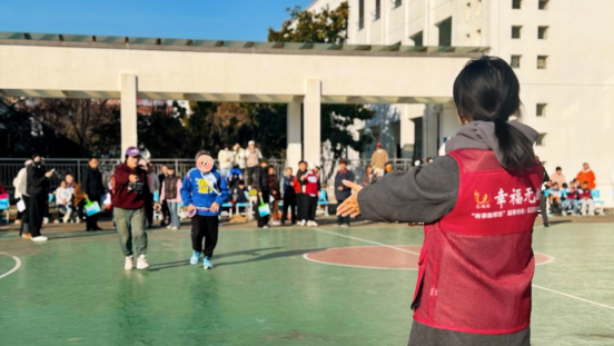 運動會現(xiàn)場社區(qū)工作人員、特教老師、志愿者與家長們組成 “愛心護航團”,全程陪伴孩子們參與活動??紤]到特殊兒童的身體與認知特點,本次運動會精心設計了“障礙運球”“趣味投籃”“親子接力跑”“螃蟹快走”等多個低強度、高趣味的項目,既考驗孩子們的協(xié)調能力,又注重團隊協(xié)作與親子互動。