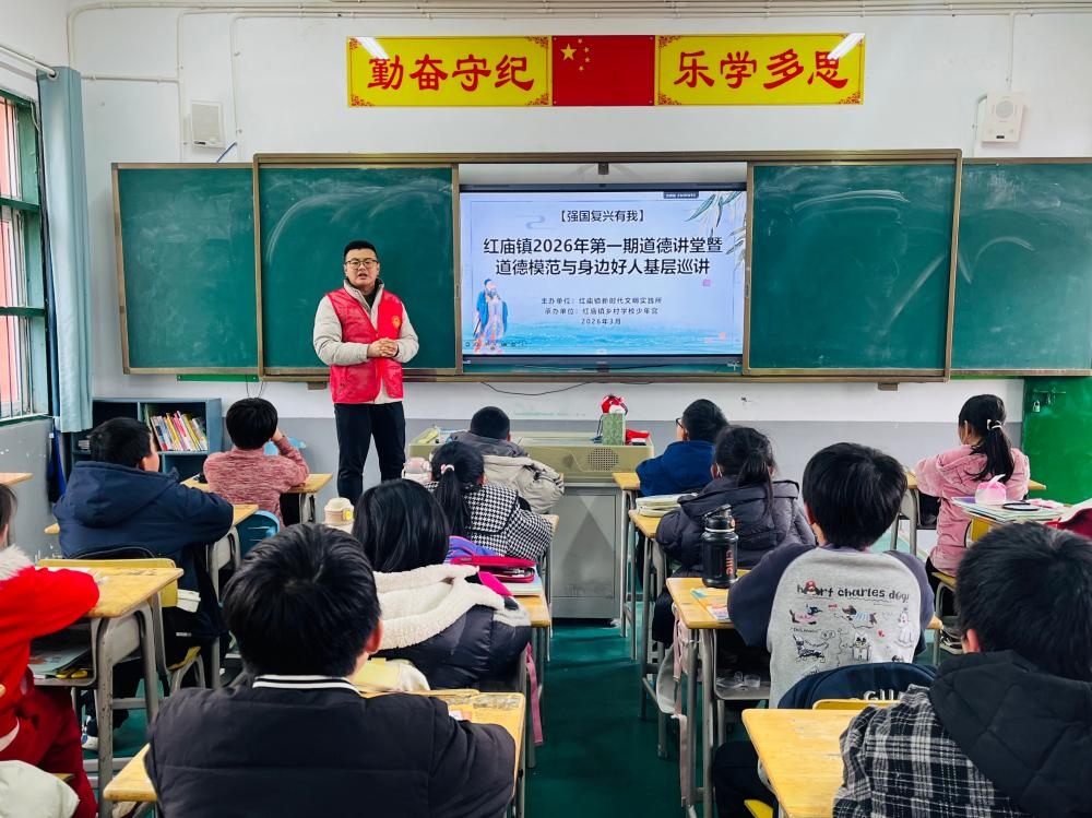 3月26日,無為市紅廟鎮(zhèn)新時代文明實踐所聯(lián)合鎮(zhèn)鄉(xiāng)村學校少年宮共同舉辦“強國復興有我”——2026年第一期道德講堂暨道德模范與身邊好人基層巡講。