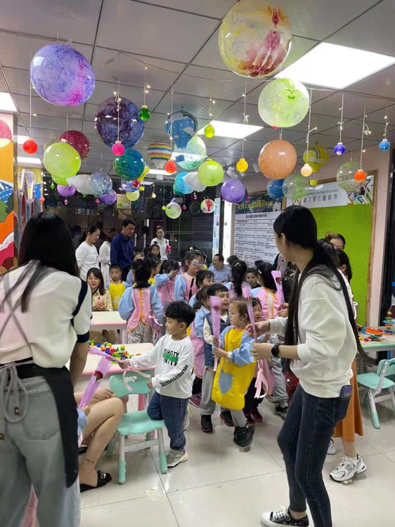 最后,在老師的帶領下,媽媽們和孩子們玩起了親子游戲,一片歡聲笑語,不亦樂乎。