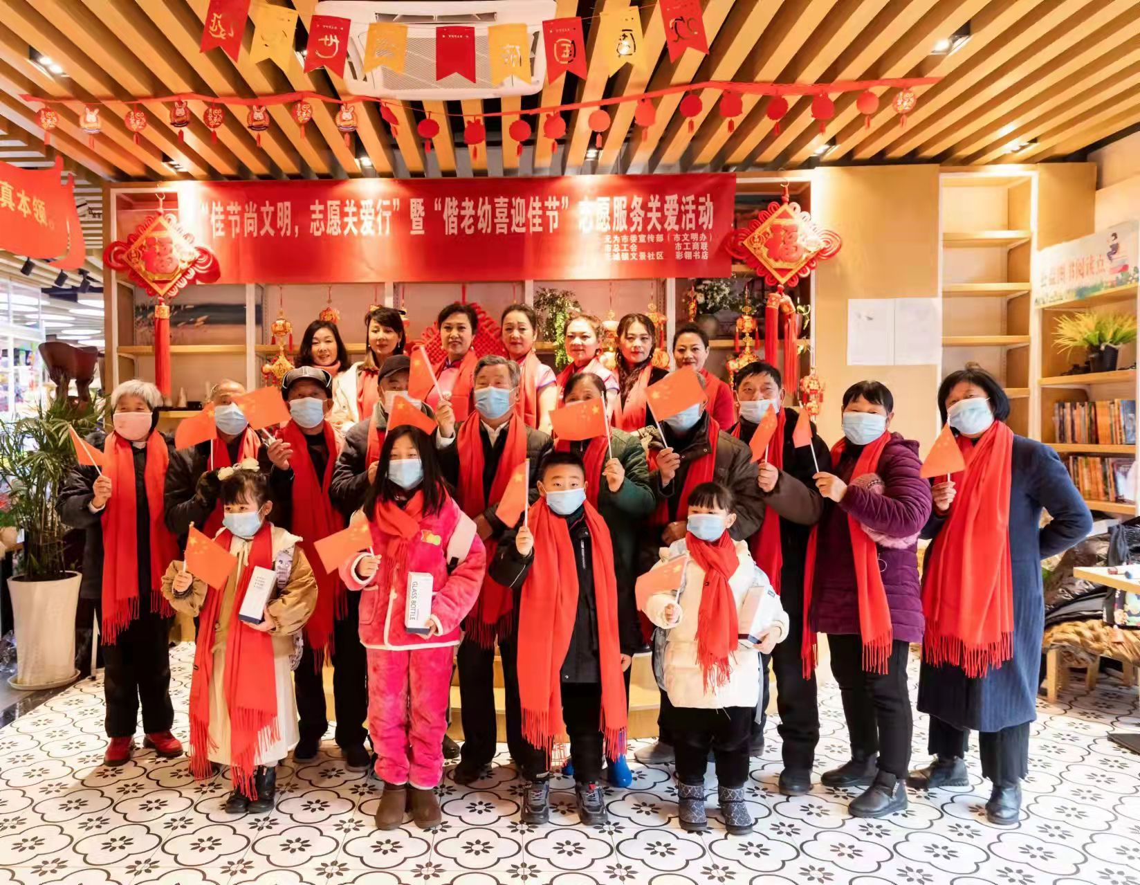 新時代文明實踐點開展以“偕老幼喜迎佳節(jié)”為主題的春節(jié)新時代文明實踐活動。鎮(zhèn)文景社區(qū)聯(lián)合無為市委宣傳部(市文明辦)、市總工會、市工商聯(lián)于文景社區(qū)彩翎書店新時代文明實踐點開展以“偕老幼喜迎佳節(jié)”為主題的春節(jié)新時代文明實踐活動。社區(qū)內的孤寡老人、留守兒童參加了此次活動。表演了經典京歌曲目《梨花頌》、獨特東方神韻的旗袍舞《小城故事》、黃梅戲《到底人間歡樂多》等,歡歌載舞,其樂融融。豐富了社區(qū)孤寡老人以及留守兒童的精神文化生活,增強了節(jié)日氛圍。