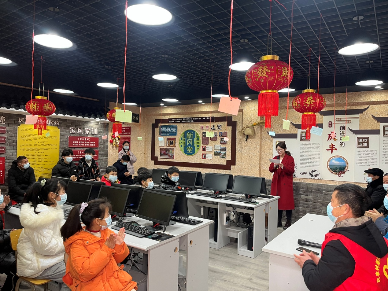 2022年2月14日,首屆“迎春鬧元宵”在無為市劉渡鎮(zhèn)慶豐村新時代文明實踐站舉行?!扒чT開鎖萬燈明,正月中旬動帝京。三百內(nèi)人連袖舞,一時天上著詞聲?!彪S著主持人錢瑩以唐詩的吟誦方式拉開帷幕。
