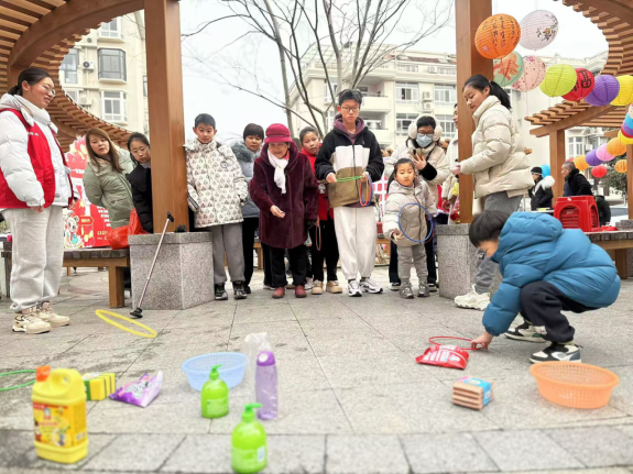 此外,社區(qū)還精心準(zhǔn)備了一系列趣味游戲,如“投壺”、“套圈”等,吸引了眾多大人和孩子的參與。游戲中,大家盡情釋放壓力,享受歡樂時光,歡聲笑語不斷。這些簡單而富有樂趣的游戲,不僅讓居民們找回了童年的記憶,更增進(jìn)了鄰里之間的情感交流。