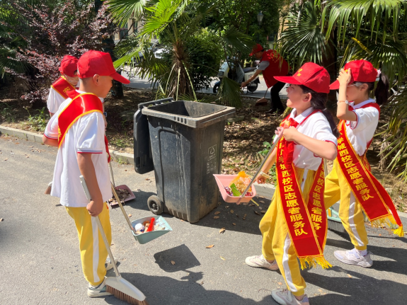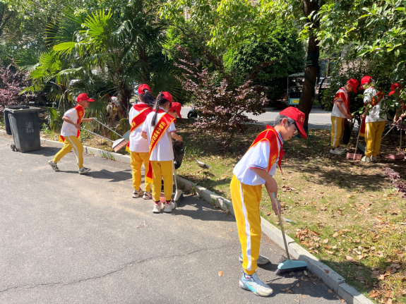 活動(dòng)現(xiàn)場,小志愿者們頭戴小紅帽,手持掃帚、垃圾袋等清理工具,在社區(qū)志愿者帶領(lǐng)下,分成4個(gè)小組對小區(qū)的綠化帶、休閑廣場、樓道周邊等公共區(qū)域進(jìn)行“地毯式”清理。