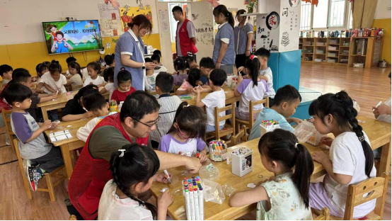 社區(qū)工作人員和幼兒園老師通過生動有趣的故事和互動問答,向孩子們講述父愛的意義和偉大,引導孩子們回憶與父親相處的溫馨瞬間。隨后,繪畫環(huán)節(jié)正式開始,在志愿者的指導下,孩子們用五彩斑斕的顏料在白色T恤形狀的卡片上自由創(chuàng)作:有的畫下爸爸的笑臉,有的描繪父子牽手的情景,還有的寫下“爸爸我愛你”的稚嫩字樣。每一筆涂鴉都飽含純真的愛意,活動現(xiàn)場洋溢著歡聲笑語?!?/p>