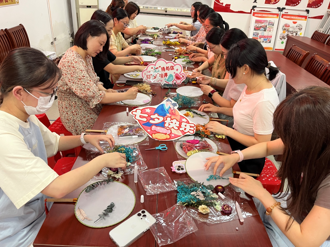 活動結(jié)束后,居民們手持自己制作的干花團(tuán)扇合影留念,臉上洋溢著喜悅之情。一把把獨(dú)具匠心的團(tuán)扇,不僅展現(xiàn)了居民的巧手和創(chuàng)意,更承載著社區(qū)對傳統(tǒng)文化傳承的美好愿景。在這個(gè)七夕節(jié),社區(qū)將傳統(tǒng)乞巧習(xí)俗與現(xiàn)代藝術(shù)創(chuàng)作相結(jié)合,讓居民在體驗(yàn)傳統(tǒng)文化魅力的同時(shí),也促進(jìn)了鄰里之間的交流與互動。(王婷婷)