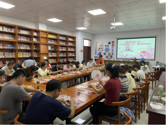 活動(dòng)第二個(gè)環(huán)節(jié),志愿者向大家介紹了七夕節(jié)的由來(lái),七夕節(jié),又稱(chēng)女兒節(jié)、乞巧節(jié),是中國(guó)民間的傳統(tǒng)節(jié)日。而團(tuán)扇是中國(guó)漢族傳統(tǒng)工藝品及藝術(shù)品,是一種圓形有柄的扇子,它代表著團(tuán)圓友善、吉祥如意。七夕節(jié)做團(tuán)扇寓意著圓滿、團(tuán)圓。關(guān)于七夕節(jié)日文化習(xí)俗介紹完,志愿者用圖片展示各種各樣的干花團(tuán)扇成品,并為大家講解團(tuán)扇的發(fā)展歷史和團(tuán)扇的制作方法,指導(dǎo)大家制作精美的永生花團(tuán)扇。