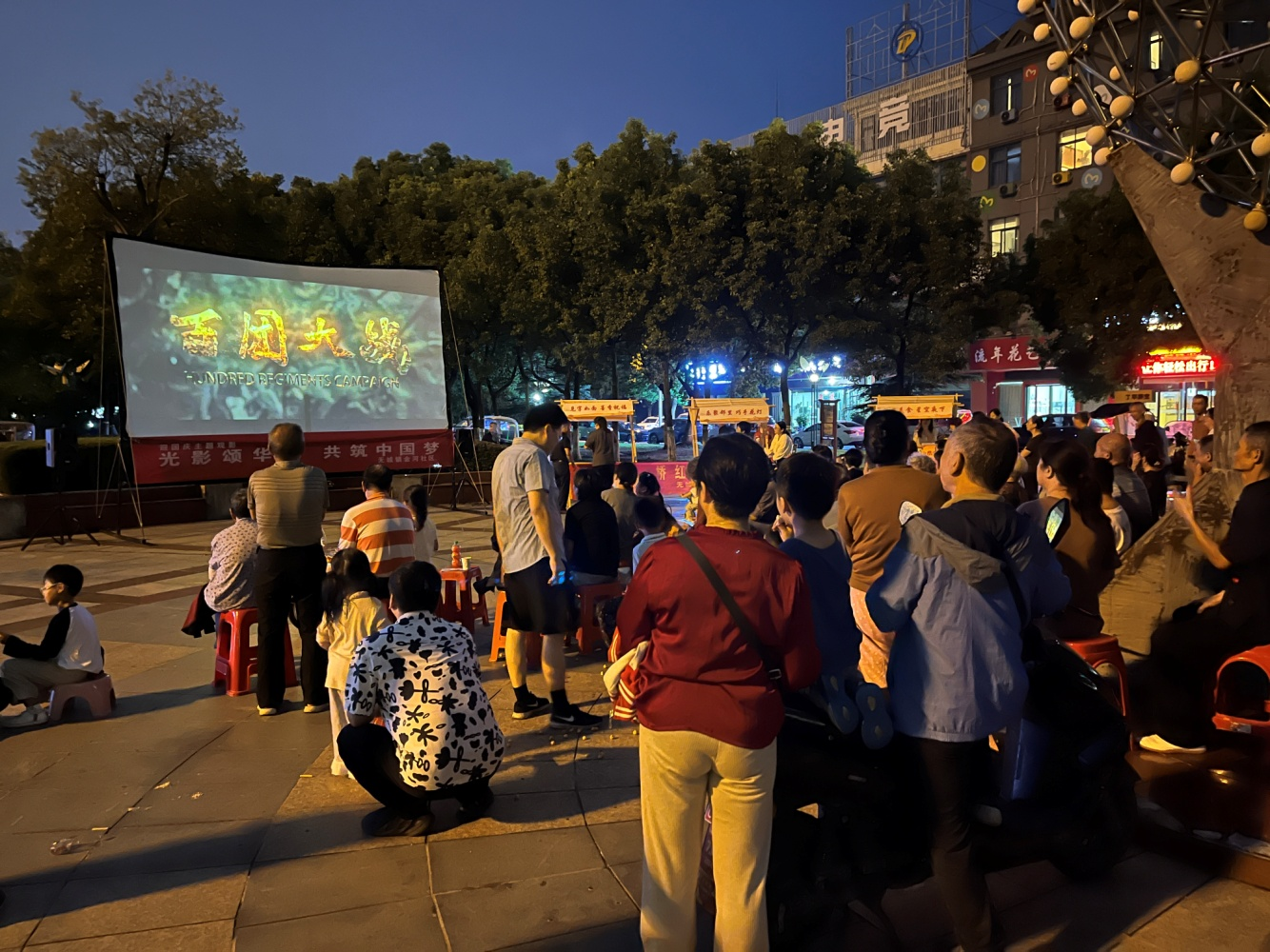 夜幕降臨,廣場中央的銀幕亮起,經(jīng)典紅色影片《百團大戰(zhàn)》準時放映。居民們或自帶板凳,或席地而坐,孩子們依偎在家長身旁,老人們搖著蒲扇重溫往昔。當熟悉的旋律響起,集體觀影的儀式感讓不同年齡層的居民跨越代際,在光影中共享感動。影片結(jié)束后,居民陶先生感慨:“這樣的場景讓我想起小時候全村人一起看電影的日子,現(xiàn)在和鄰居們一起看,更有家的感覺。”
