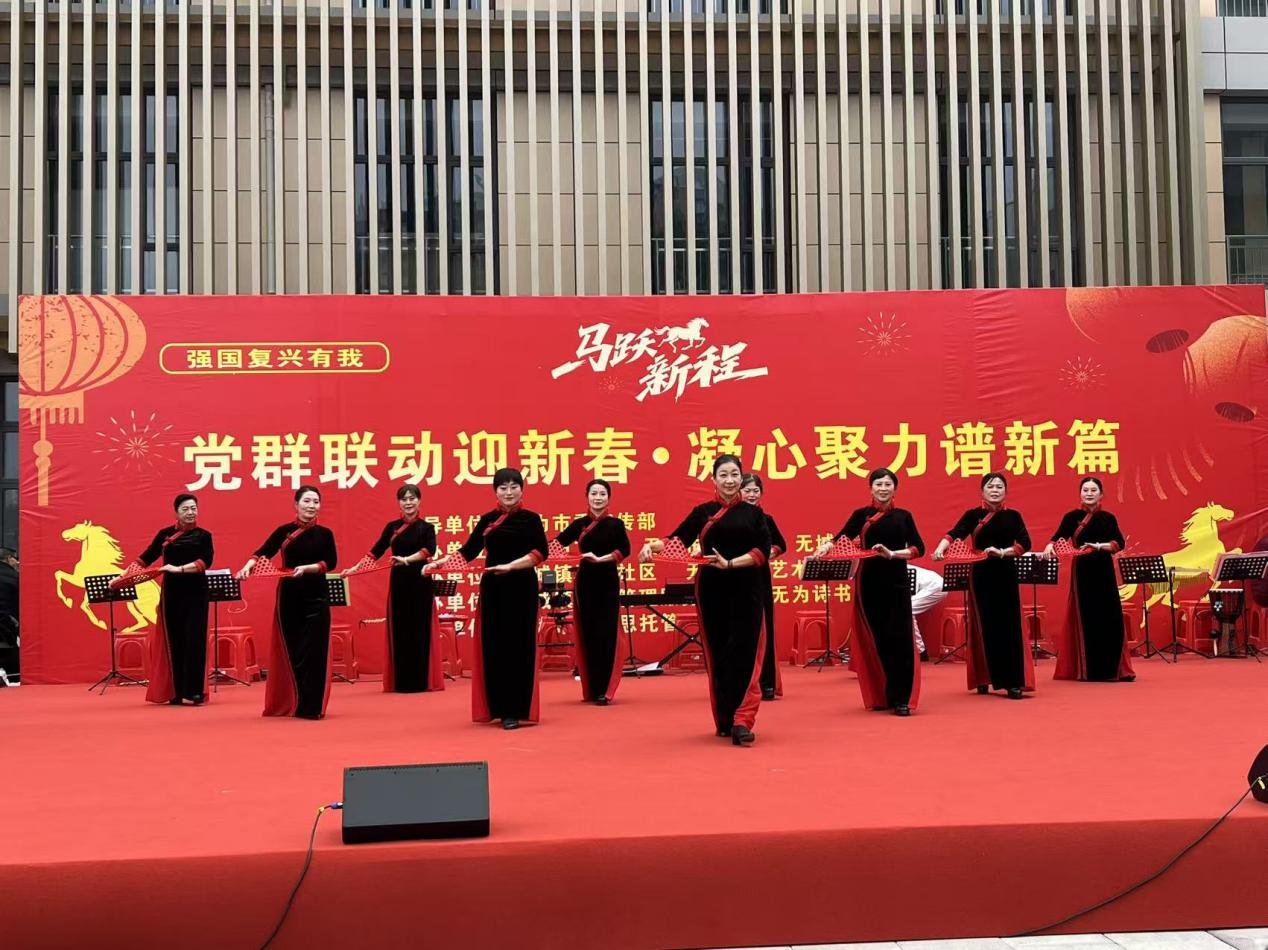 2月3日下午,無為市無城鎮(zhèn)城東社區(qū)宜鄰中心廣場暖意融融、歡聲如潮,“黨群聯(lián)動迎新春 凝心聚力譜新篇”主題活動在此隆重舉行。在無為市委宣傳部的指導(dǎo)下,由市文聯(lián)、市民政局、無城鎮(zhèn)人民政府聯(lián)合主辦,城東社區(qū)與濡湏藝術(shù)團(tuán)共同承辦,城管服務(wù)中心、詩書畫聯(lián)誼會協(xié)辦的這場盛會,吸引了數(shù)百名社區(qū)居民歡聚一堂,共赴新春之約。隨著龍飛舞蹈隊《鼓韻醉東方》的激昂鼓點,活動正式拉開帷幕,鏗鏘的節(jié)奏奏響了新春的序曲,也點燃了現(xiàn)場觀眾的熱情。