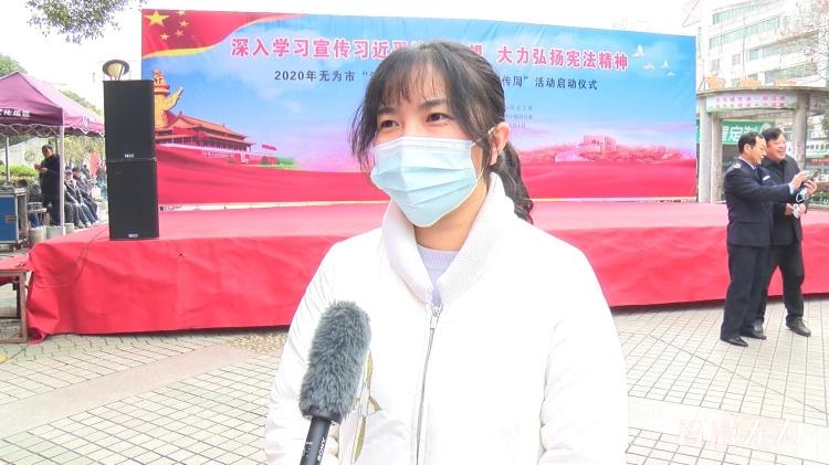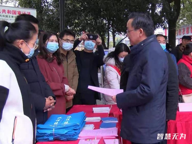 “今天我們在這里舉行2020年無為市“江淮普法行”暨“憲法宣傳周”的啟動儀式,目的就是大力弘揚憲法精神,廣泛開展以憲法為核心的法律法規(guī)宣傳,在全社會營造尊法、學法、守法、用法的濃厚氛圍?!笔兴痉ň謪黔傉f。