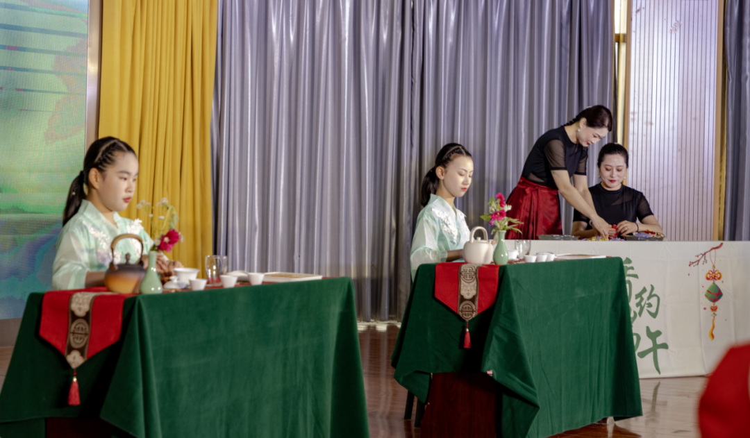 活動精彩紛呈,節(jié)目形式多樣。大氣磅礴的器樂合奏《金蛇狂舞耀中華》拉開活動的序幕,旗袍秀《秀出新國風(fēng)》讓觀眾領(lǐng)略到傳統(tǒng)文化的時尚之美,《愛在端午》通過茶藝表演和香囊制作相互動,展示了端午節(jié)的獨特魅力?;顒又羞€穿插有獎知識問答,內(nèi)容涵蓋防溺水安全教育、垃圾分類、反電詐等。隨后開展的包粽子比賽,大家巧手翻飛,卷粽葉、包糯米、放蜜棗、系棉線……熟練的動作一氣呵成,將節(jié)日的祝福包裹進(jìn)一個個粽子里。