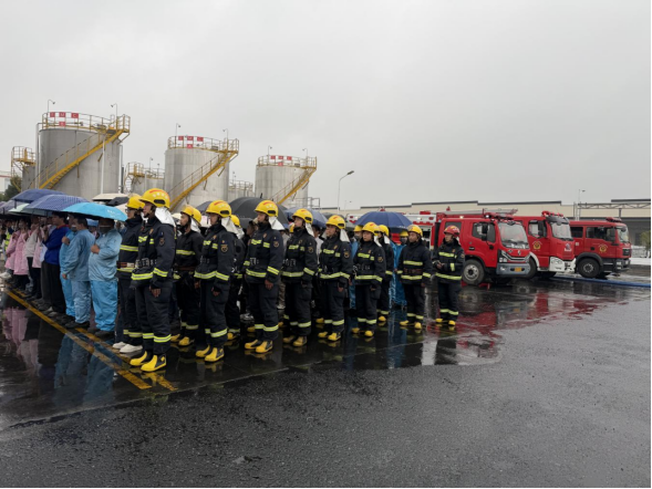 演練模擬了電解液罐區(qū)儲(chǔ)罐泄漏火情場(chǎng)景突發(fā),廠區(qū)迅速啟動(dòng)應(yīng)急預(yù)案,比亞迪專(zhuān)職消防隊(duì)第一時(shí)間開(kāi)展初起火災(zāi)處置;金塔路站“接警”后快速響應(yīng),出動(dòng)3車(chē)14人趕赴現(xiàn)場(chǎng),與企業(yè)專(zhuān)職消防員配合,高效完成火情控制與處置。