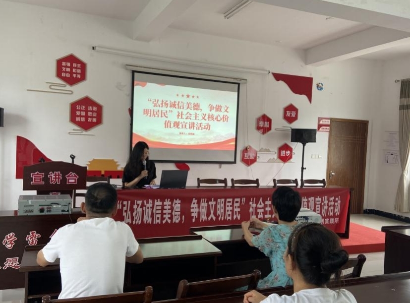 為迎接本月文明實(shí)踐日,7月15日上午,高溝鎮(zhèn)新時(shí)代文明實(shí)踐所組織開展“弘揚(yáng)誠信美德,爭做文明居民”社會(huì)主義核心價(jià)值觀宣講活動(dòng)暨誠信主題道德講堂活動(dòng)。村干部及周邊居民群眾參加活動(dòng)。
