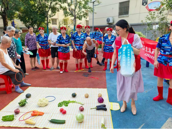 活動現(xiàn)場氣氛熱烈,歡聲笑語不斷,處處洋溢著融洽與溫馨。傳遞團結(jié)協(xié)作精神的鄰里跳繩接力賽,吸引了眾多居民踴躍參與,大家在默契的配合與共同的跳躍中感受著集體的力量和運動的快樂。趣味橫生的“果蔬套圈”游戲更是備受青睞,居民們不僅體驗了游戲的樂趣,更將一份份新鮮蔬菜作為收獲帶回家,喜悅之情溢于言表。