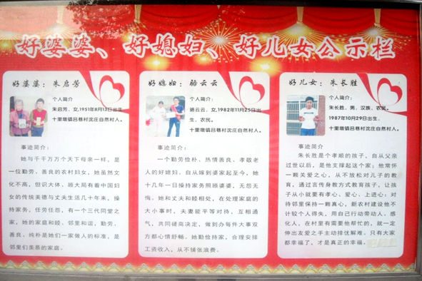 市民閑暇時,蹓噠蹓噠,串串門,聊聊天,走一走、看一看,門旁的光榮牌、文化廣場好人先進事跡宣傳欄常常吸引他們注目觀看,營造了良好的社會道德輿論氛圍,鼓勵民眾向他們學習,引領市民崇德尚善,向好人學習,向模范看齊。