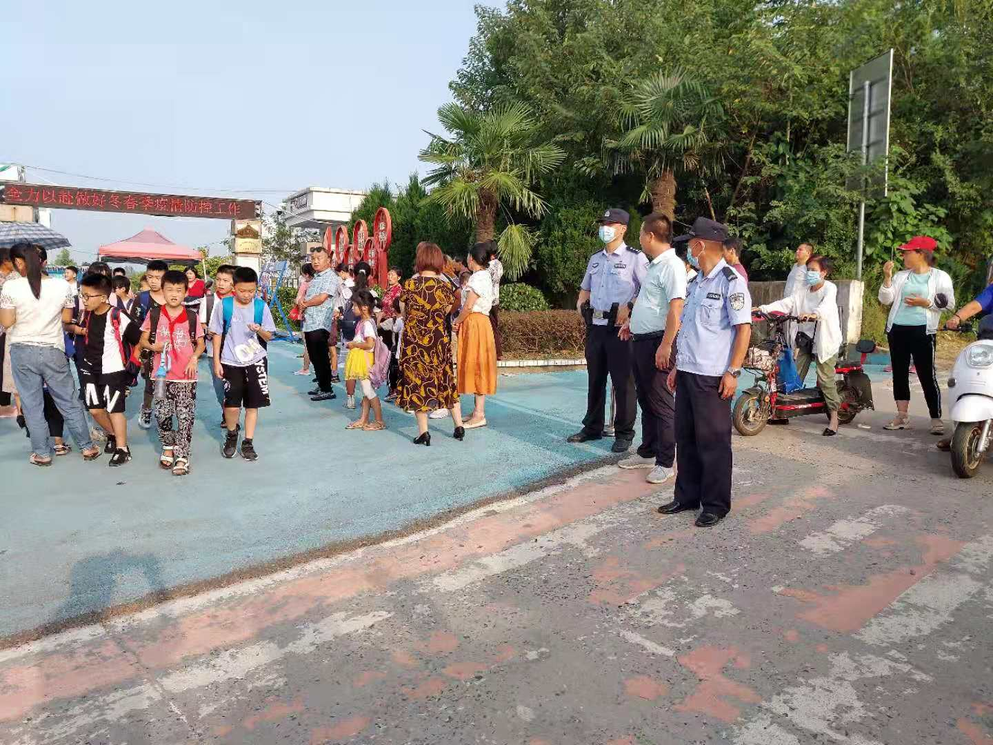 “護(hù)苗”行動中,工作人員在學(xué)校周邊交通要塞路口進(jìn)行交通疏導(dǎo),緩解交通擁堵,指揮車輛行人安全通行,禁止車輛亂停亂放影響交通安全,并向?qū)W生家長宣傳交通安全知識,建議家長將機動車、非機動車停放在學(xué)校附近停車場內(nèi),步行至學(xué)校接送學(xué)生入校,積極動員廣大學(xué)生家長共同攜手維護(hù)學(xué)校周邊安全文明的交通環(huán)境,助力文明創(chuàng)建工作順利開展。(董倩)