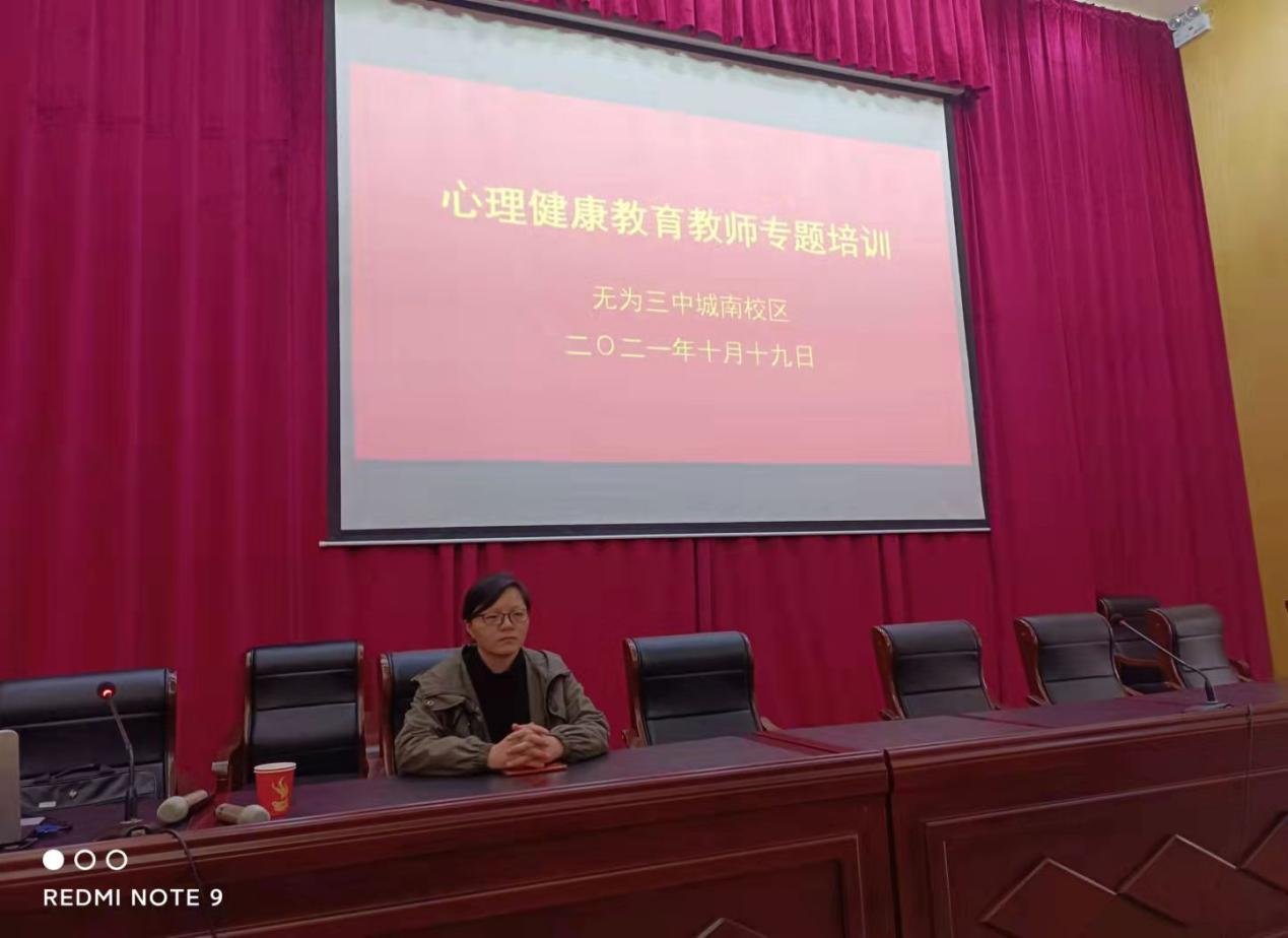無為三中城南校區(qū)舉辦心理健康教育教師專題培訓。
