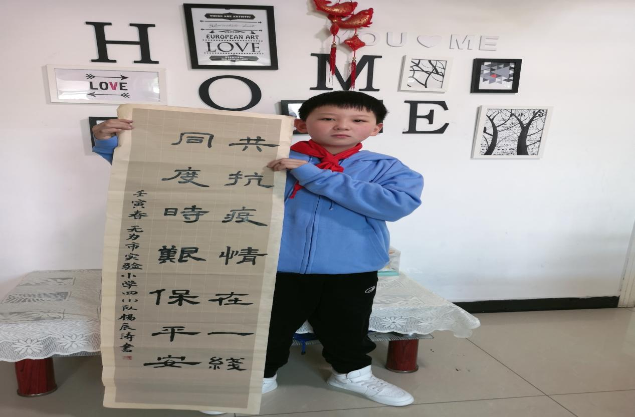 同學(xué)們利用課余時間行動起來,繪制圖文并茂的手抄報,書寫言真意切的對聯(lián),書寫一封封情感真摯的書信,向一線疫情防控工作人員表達純真的童心,為家鄉(xiāng)祈福,為祖國加油!