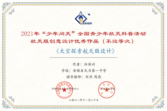 無為一中榮獲"全國青少年航天科普活動優(yōu)秀活動基地校"稱號,為蕪湖市唯一一所入選學(xué)校。