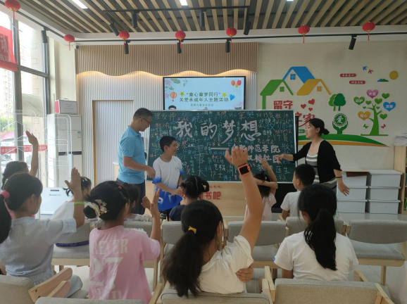 隨后,志愿者們引導小朋友說出自己的夢想,并鼓勵小朋友們積極主動、大膽地上臺講述自己的夢想。此環(huán)節(jié)不僅能讓孩子們看清自己心中的自我形象,還能通過拓展孩子們的想象力和創(chuàng)新力,完成綜合且全面的自我認知。