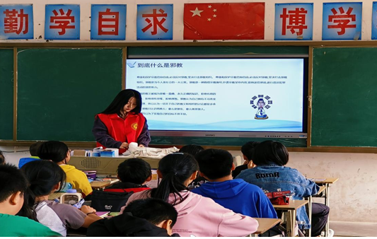 通過(guò)開(kāi)展集中學(xué)習(xí)、培訓(xùn)講座等多種活動(dòng),教育引導(dǎo)學(xué)生和教師充分認(rèn)識(shí)開(kāi)展反邪教宣傳教育的重要意義,提高對(duì)邪教現(xiàn)實(shí)和潛在危害的認(rèn)識(shí),學(xué)習(xí)、領(lǐng)會(huì)、掌握防范邪教工作的基本方針、原則和政策,始終繃緊反邪教這根弦,積極唱響愛(ài)國(guó)主義主旋律,不斷增強(qiáng)反邪教的責(zé)任感和使命感。緊抓課堂,凸顯主渠道作充分發(fā)揮課堂主渠道作用,積極鼓勵(lì)學(xué)校組織開(kāi)展反邪教主題班會(huì)。工作人員利用 PPT 講解、播放警示教育宣傳片和互動(dòng)問(wèn)答等形式讓學(xué)生充分了解什么是邪教、邪教的種類(lèi)、邪教的危害等基本常識(shí),并發(fā)放反邪教宣傳手冊(cè),號(hào)召學(xué)生都行動(dòng)起來(lái),爭(zhēng)做"傳聲筒",將學(xué)到的反邪知識(shí),帶回家講給家人和鄰居聽(tīng)。豐富形式,推活動(dòng)走實(shí)見(jiàn)效。